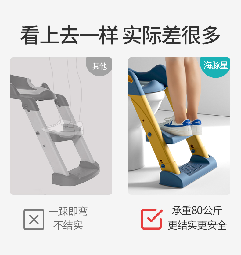 半小時前儿童马桶坐便器楼梯男小孩尿便盆圈女宝宝专用婴儿折叠阶梯脚踩凳 - 【新品體驗】儿童马桶坐便器折叠阶梯脚踩凳