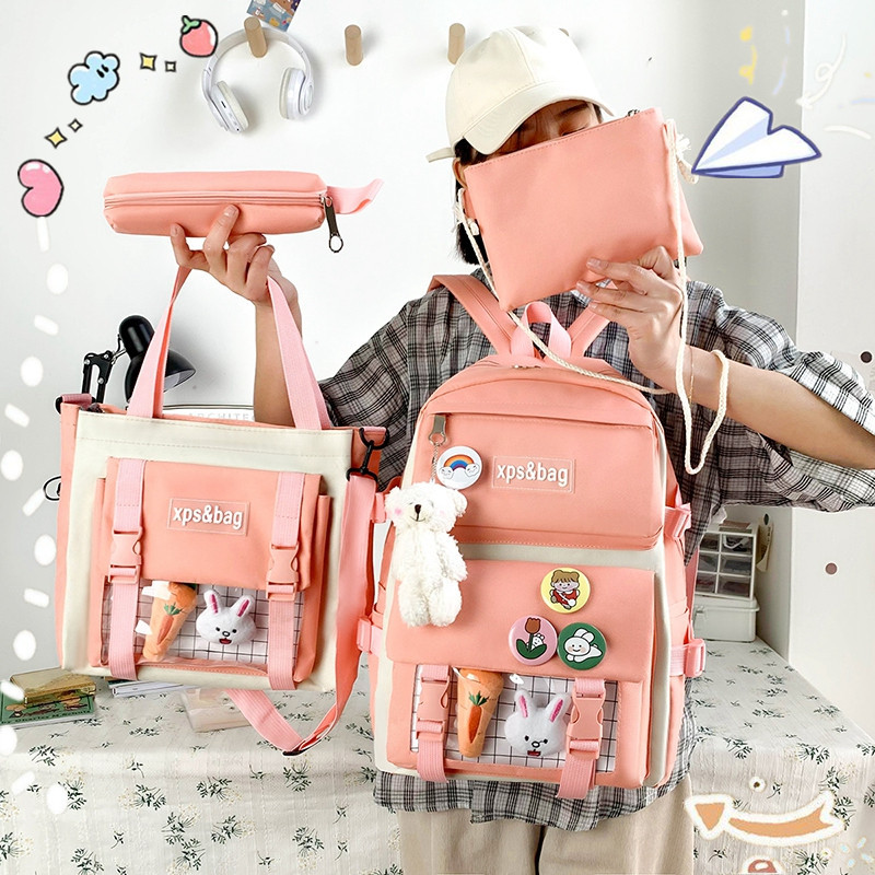 5分鐘前韩版潮流四件套學生書包_國小國中高中背包_大學生帆布撞色雙肩 - 【新品上市】1入组 -NT$1180